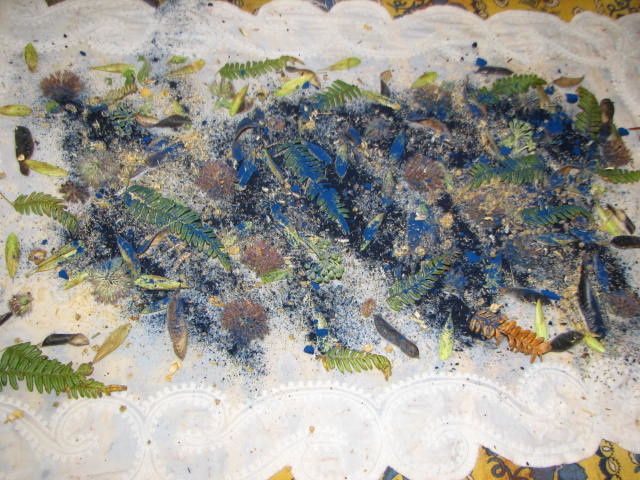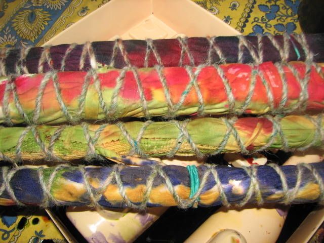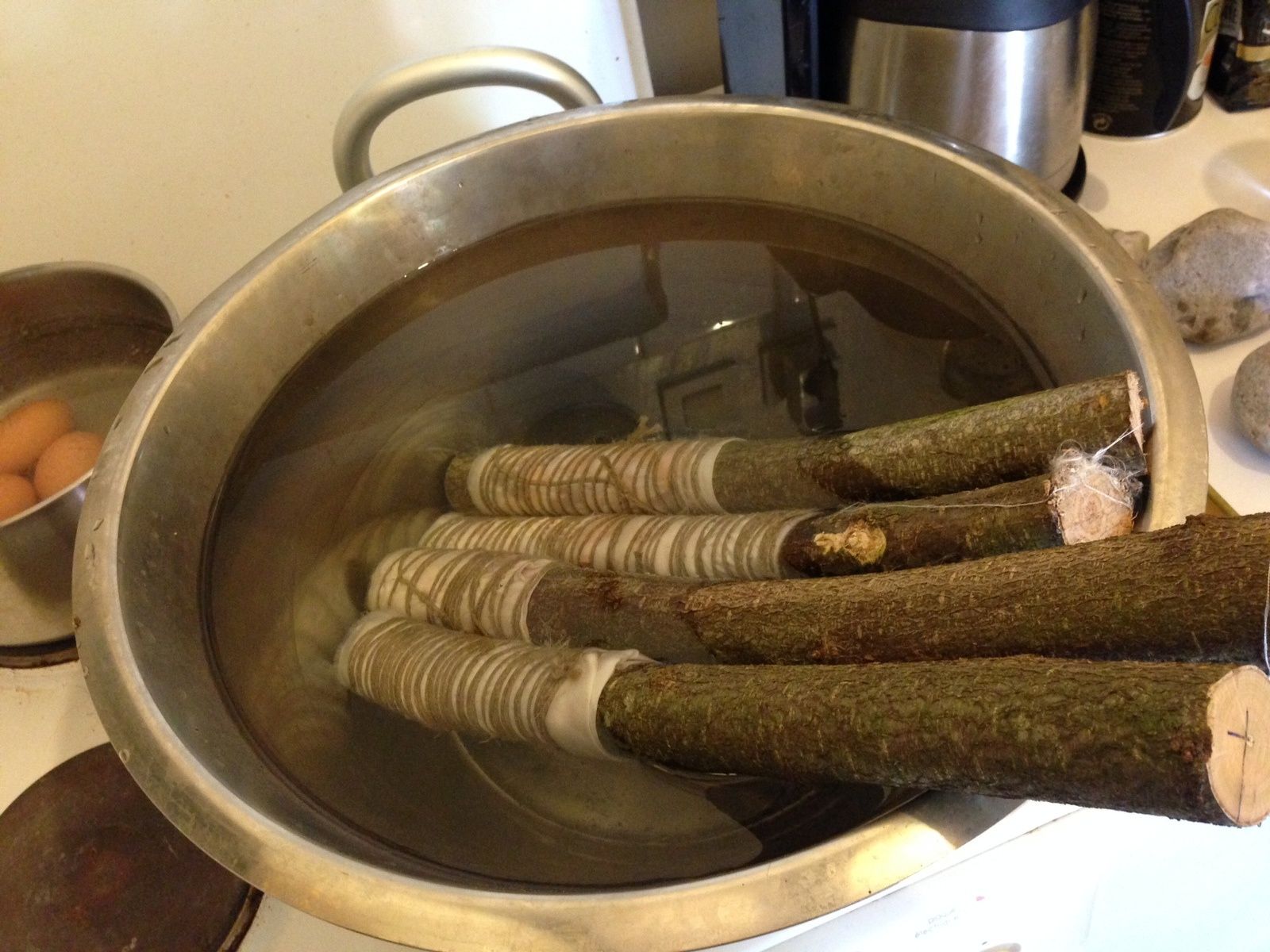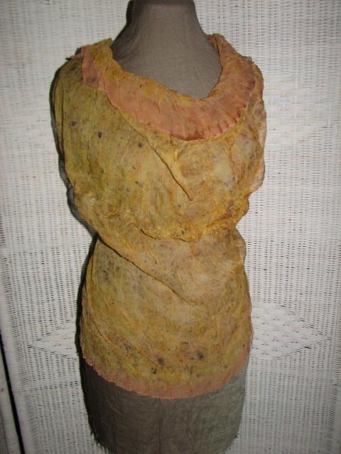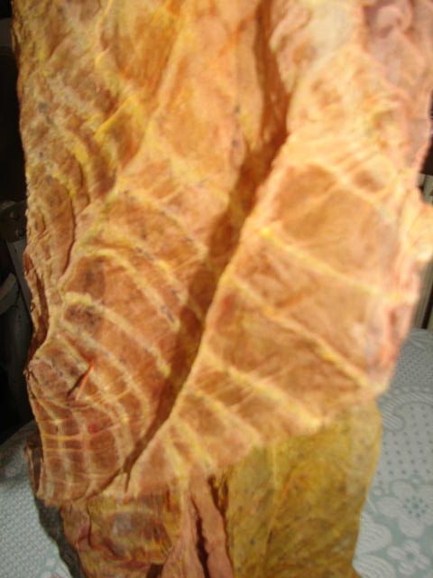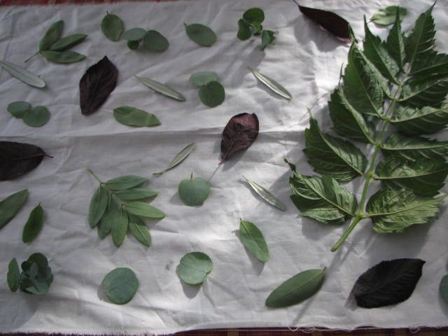 Il est temps de récolter les feuilles d'automne. Après différents bains de teinture végétale, impression de sumac, cotinus, eucalyptus, fougères, noyer ... puis cuisson.